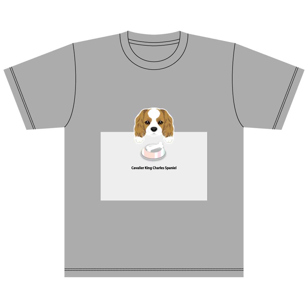 かわいいキャバリアキングチャールズスパニエルがプリントされた綿素材のTシャツです。