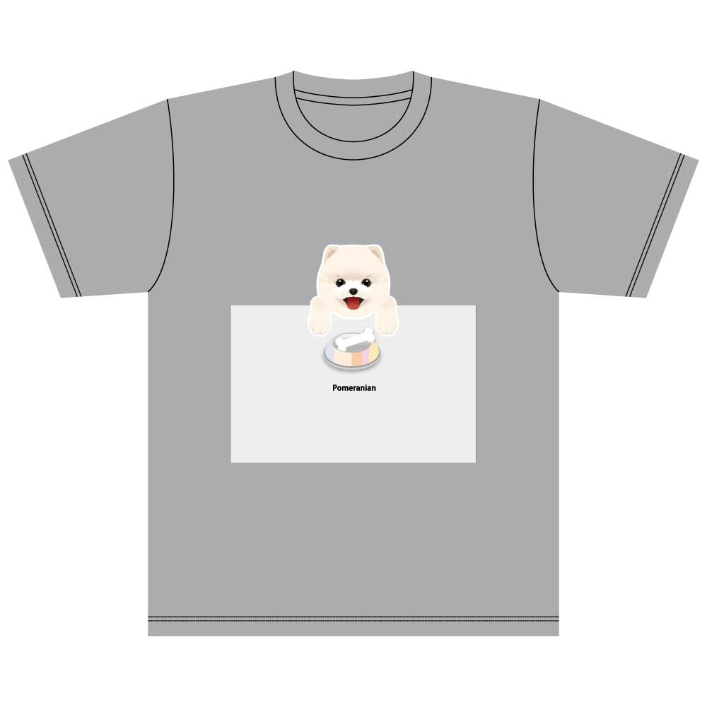 かわいいポメラニアンがプリントされた綿素材のTシャツです。