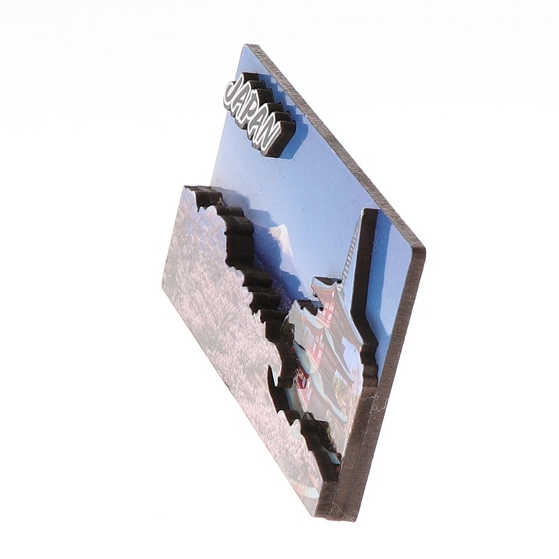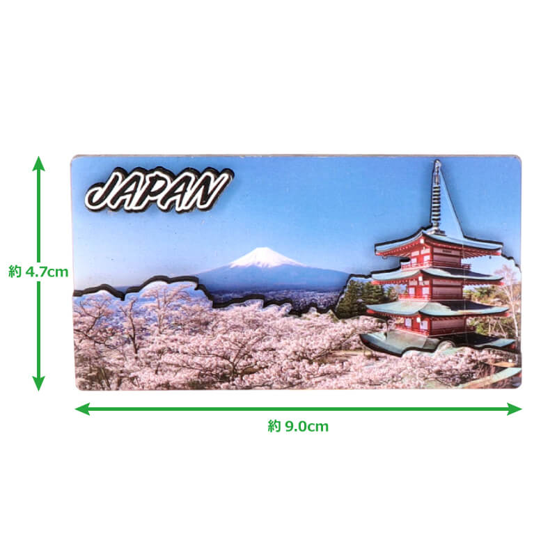 晴天の景色で色鮮やかなこのマグネットは、富士山・五重塔・桜と三層構造となっており、しっかりとした作りになっています。